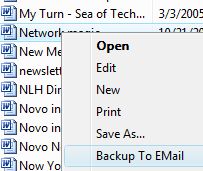 makes this a snap for Gmail users. (It also works with other Webmail services, provided you can provide the necessary SMTP server info.) All you do is right-click any file (or folder--the program will automatically Zip them for you) and choose Backup to Email.Presto! The program instantly sends your file(s) to your Webmail account. Obviously you can do likewise with your everyday e-mail client, but that requires considerably more clicking. This is a two-click timesaver, one that I hope will encourage you to make on-the-fly backups of critical files.